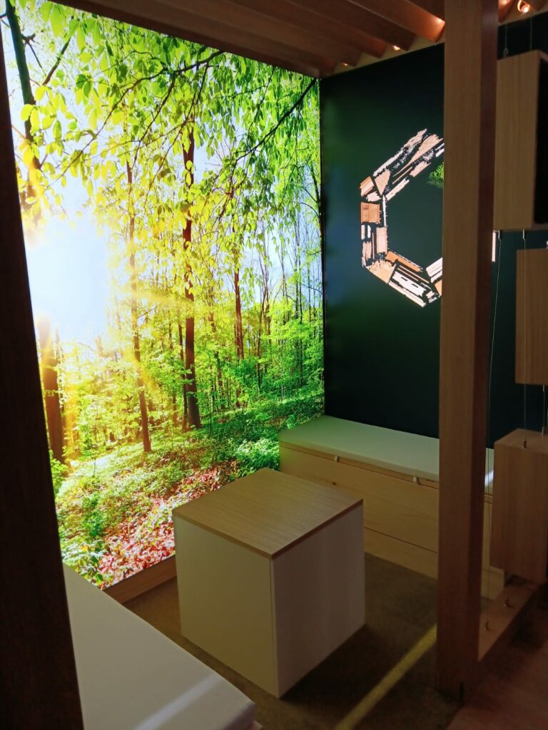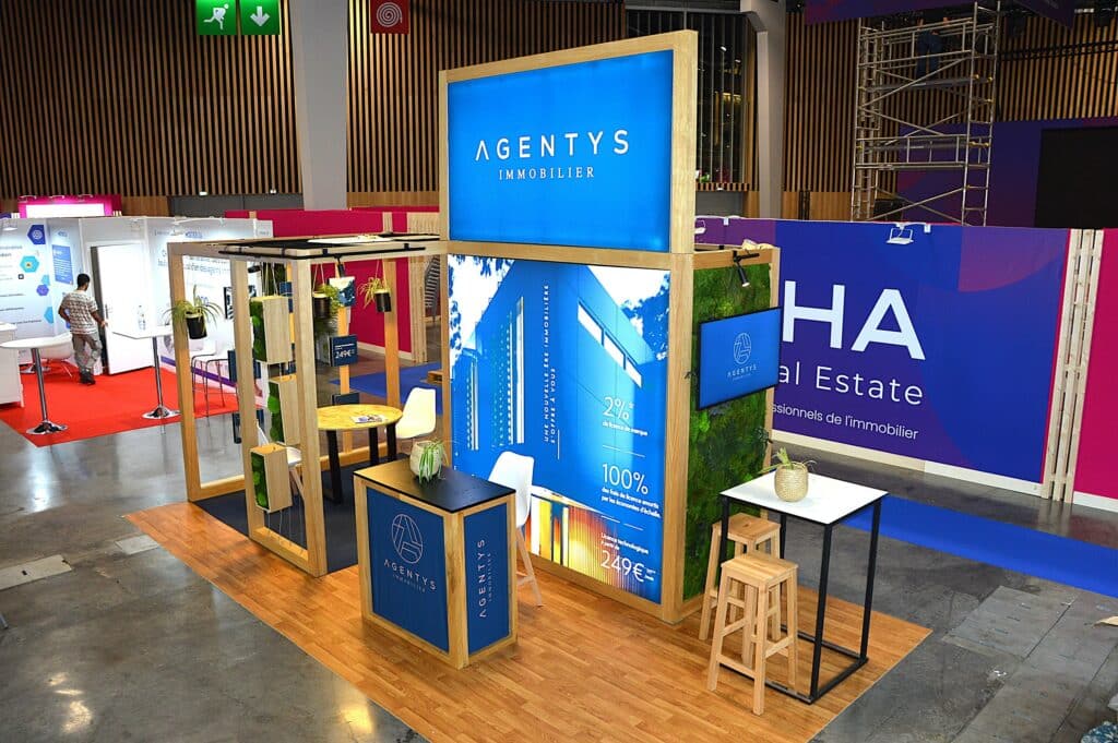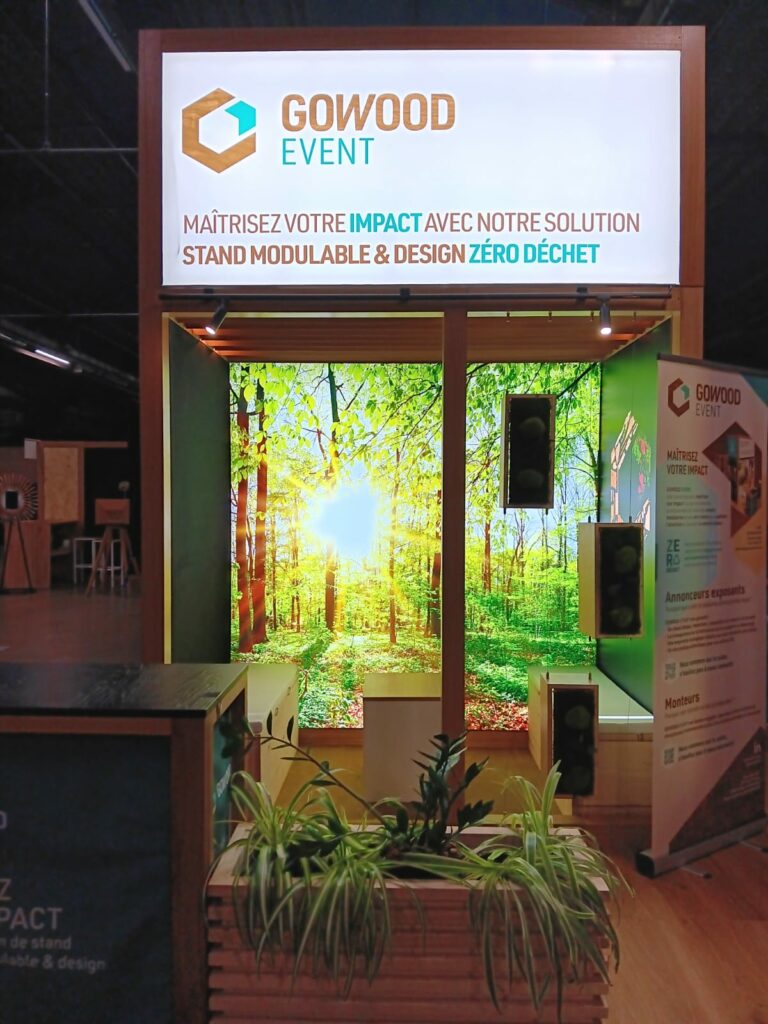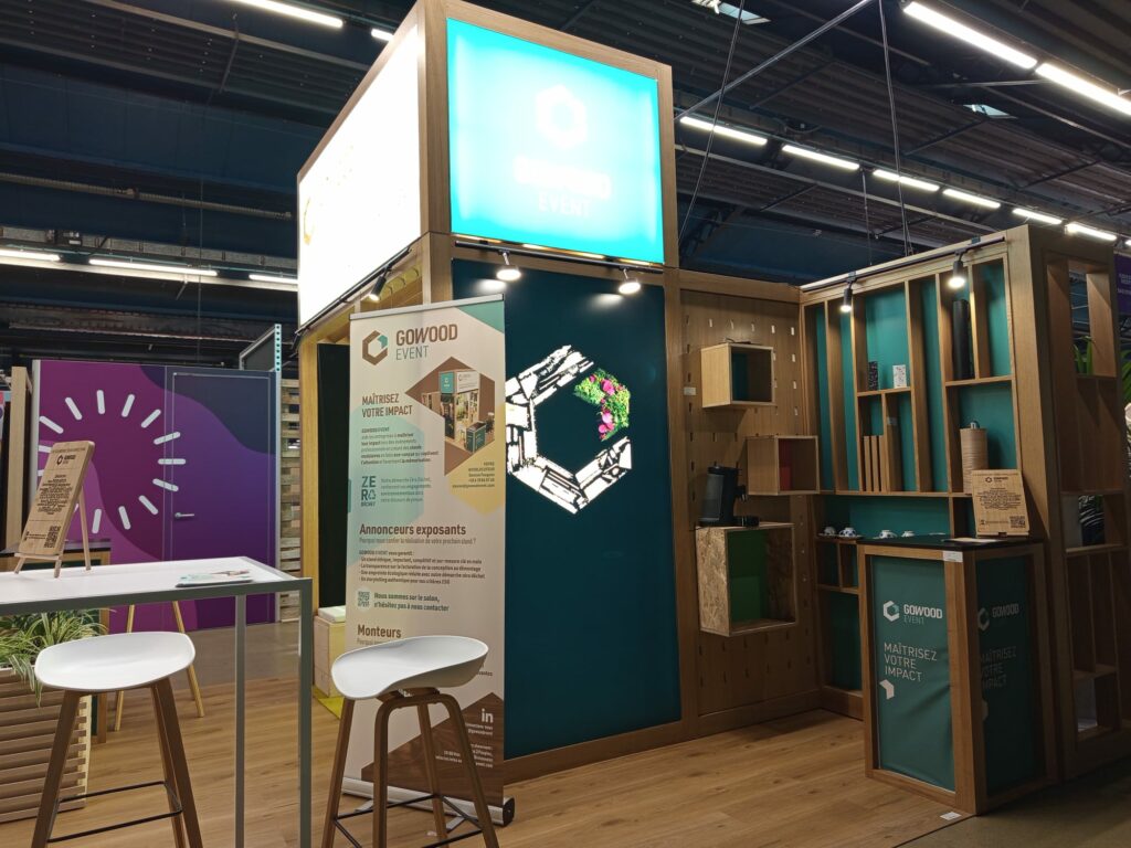 Exemple de stand évènementiel modulable, en bois écoresponsable, de 30m²